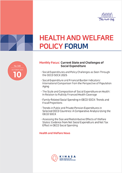KIHASA has published the October issue (No. 348) of the Health and Welfare Policy Forum, with its monthly focus "Current State and Challenges of Social Expenditure" (Click here to download this month's articles.)
